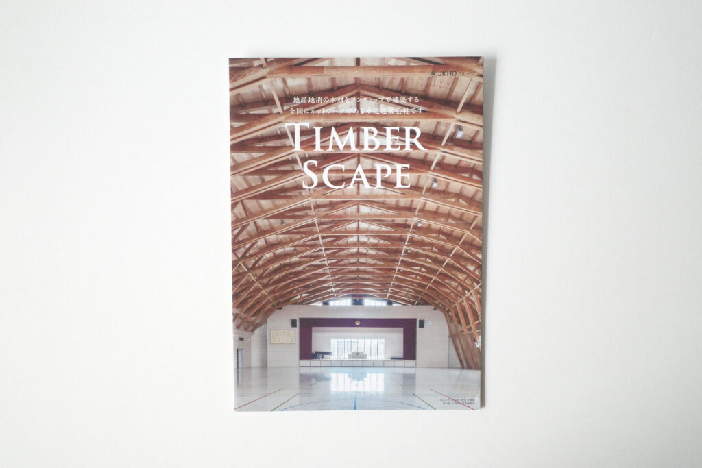 株式会社ティンバースケープ様の会社案内パンフレットを制作いたしました。全国にご紹介したい事例があるということで、日本地図を中心に配置してA4の3P分を一面にしてご紹介することにしました。
