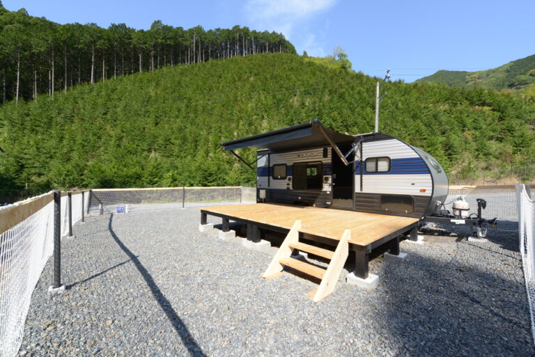 静岡市内牧の「さんかく山 CAMP FIELD」様の開業にあたり、キャンプ地山林の伐採、測量、整地、レイアウト、電気水道の配管、ウッドデッキの施工、ビオトープ作り等を請け負わせていただきました。また、開業にあたりネーミングやロゴ制作も行いました。こちらのキャンプ場は市街地から車で20分と近いのに周囲が森林に囲まれており、気軽に非日常を体感できるめずらしいキャンプ場です。テントを持っていないキャンプ初心者も、トレーラーハウスに宿泊できます。