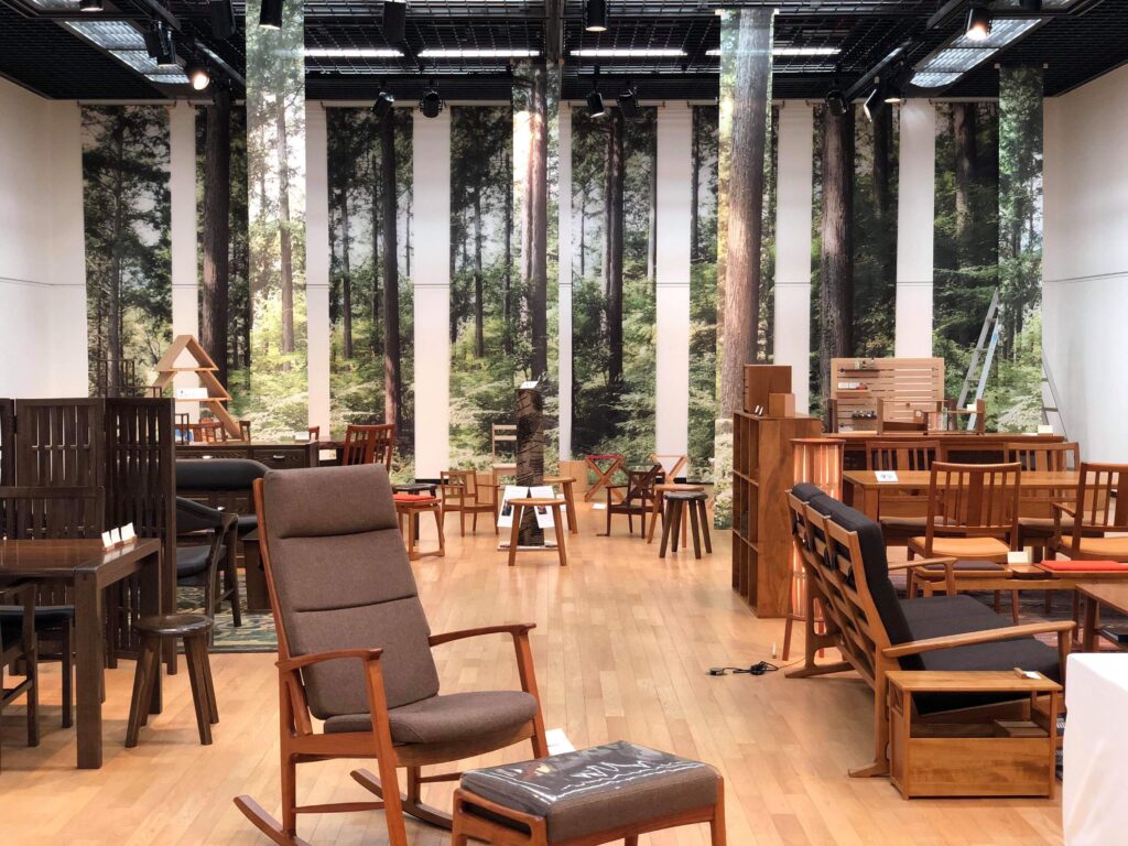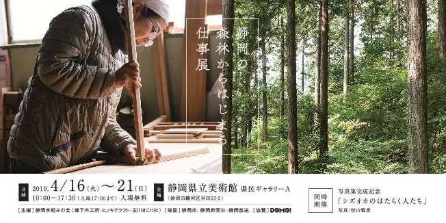 静岡木組みの会(森下木工所、ヒノキクラフト、玉川きこり社)で静岡県立美術館の県民ギャラリーにて展示を行いました。その展示のトータルコーディネートと、DMやポスターなどをデザイン制作いたしました。