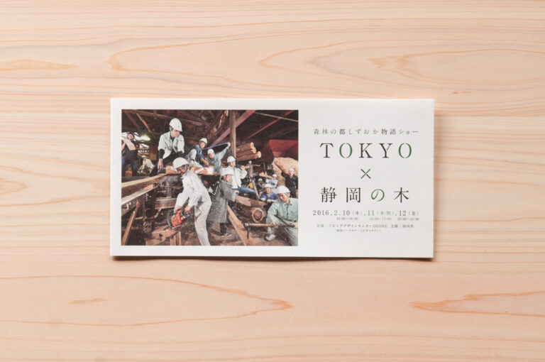 静岡県主催で行われた「TOKYO×静岡の木」展示会の空間コーディネート、案内DMのデザイン、ロゴデザインを行いました。